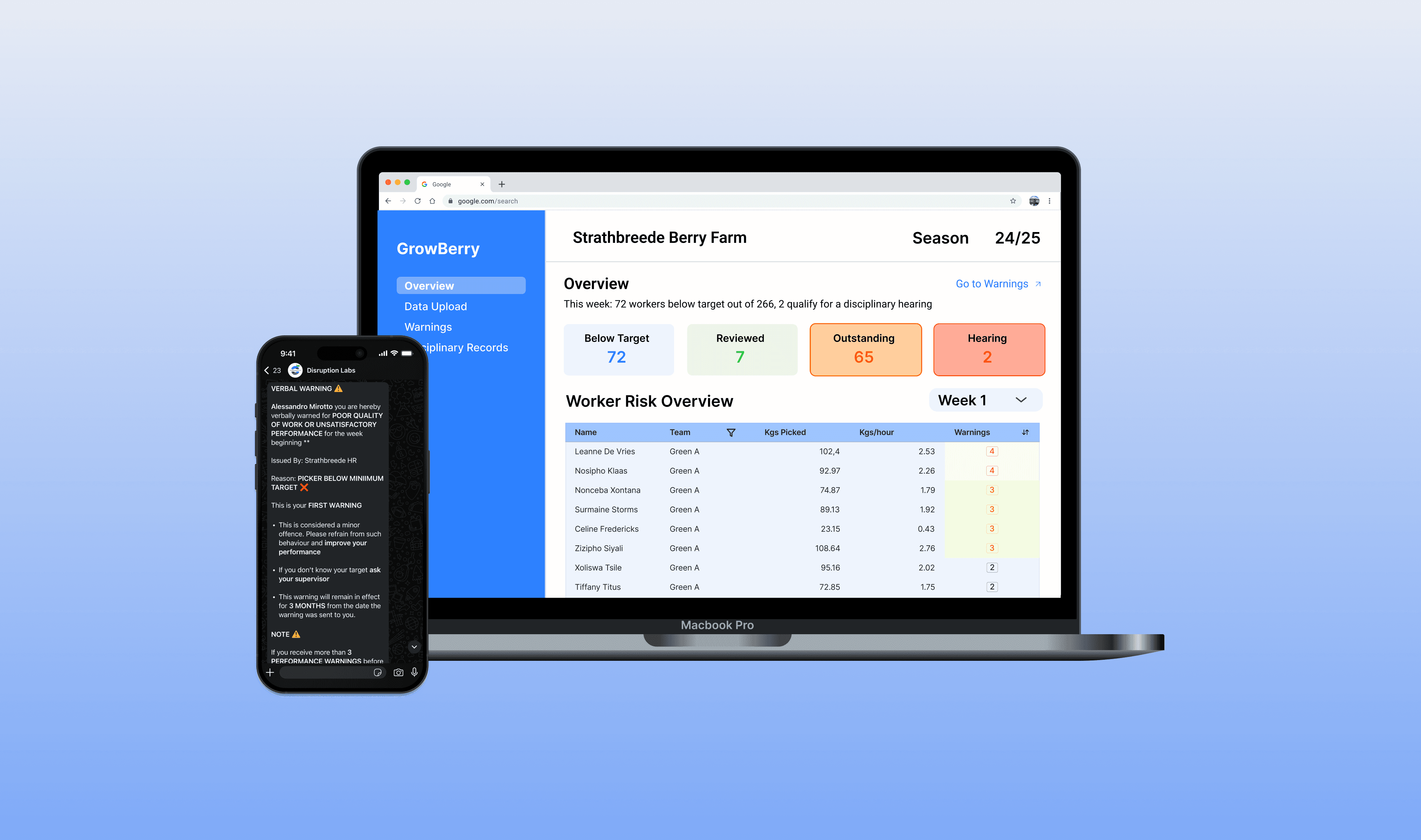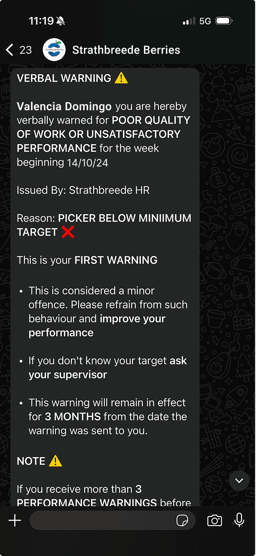 By using WhatsApp — the most accessible channel for this workforce — HR could deliver and track warnings at scale, while workers gained transparent access to their own performance record.